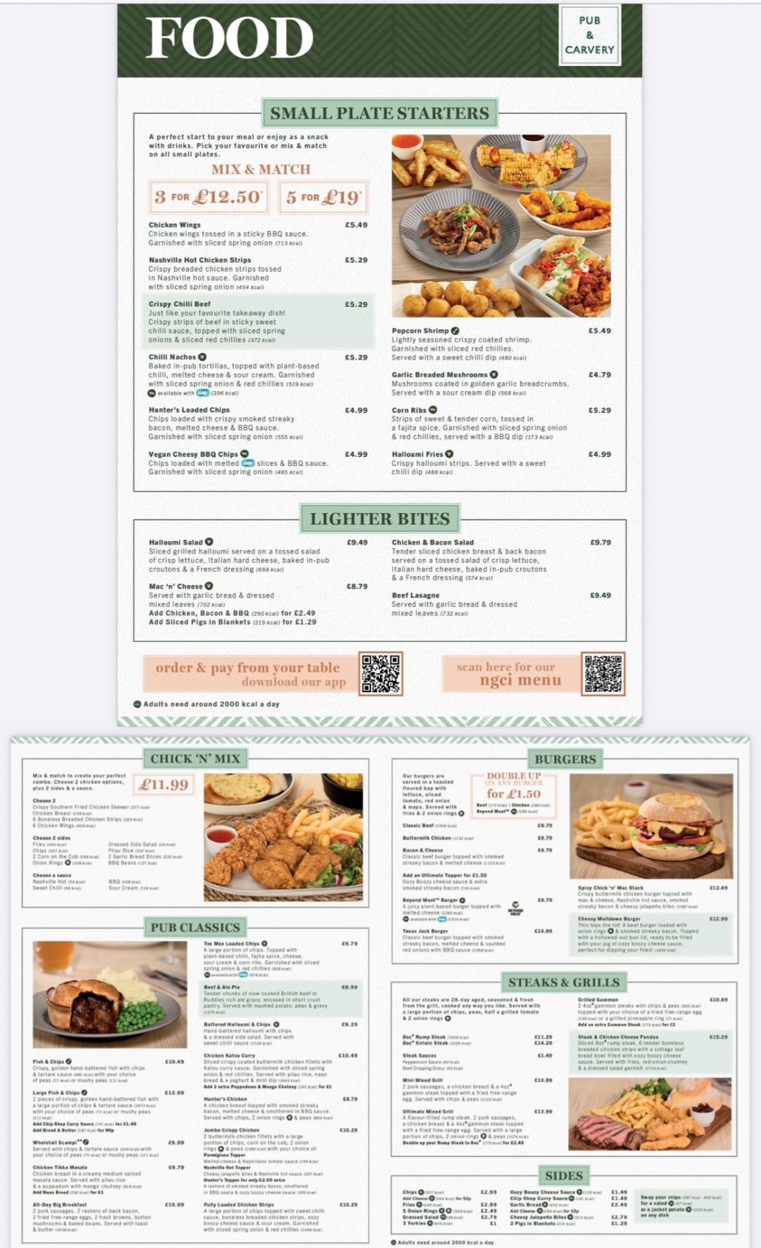 A brilliant Carvery & Main menu, shows all major live sport in a well set out bar , Greene King Sports app available to be downloaded and discounts given when games are on, games to be played and prizes to be won.